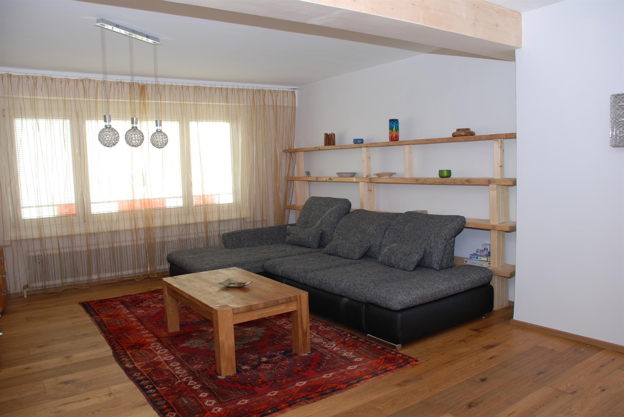 Großzügiges und gemütliches Wohnzimmer mit ausziehbarer Couch, voll ausgestattete Küche, Bad mit WC und Waschmaschine, 2 Schlafzimmer mit je 2 Doppelbetten, Zusammen mit 1 Notbett und der ausziehbaren Couch ist Platz für bis zu 7 Personen. Dachterasse mit Ausblick auf den Bludenzer Hausberg.