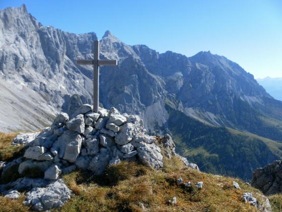Der vielbegangene Pernerweg entlang der Dachsteinsüdwand bietet zwei unschwere Gipfelziele, die aber nur (beinahe) weglos zu erreichen sind.