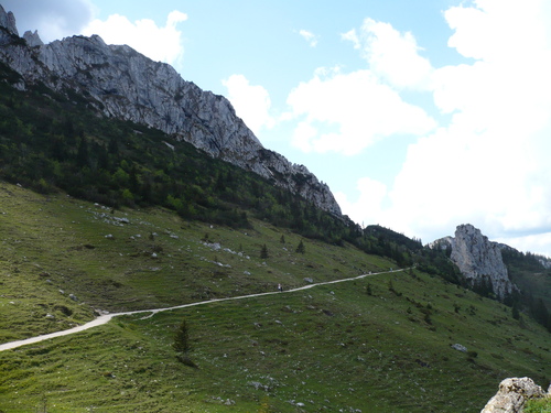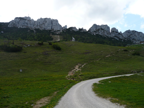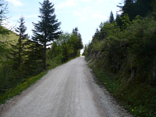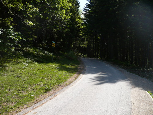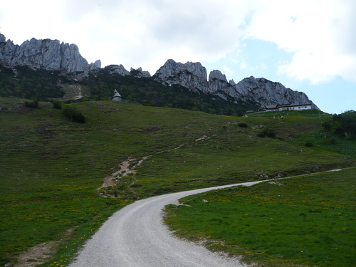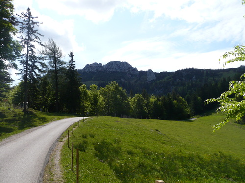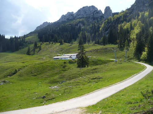 Wer es sportlicher starten möchte, kann den ersten Anstieg bis zum "Stachus" über die Maisalm nehmen, dann ist der Rückweg der gleiche. Am Stachus geht es über einer Forst-/Schotterstraße geradeaus weiter über die Schlechtenberger Kapelle, bis zum geteerten Stück bis zur Gorialm, genannt das Goriloch mit einer Steigung von 20 %, ist dies die größte Herausforderung der Tour. An der Gorialm und Schlechtenbergalm mit Schotter- und Asphaltierten Abschnitten vorbei bis zu Ihrem Ziel der Steinlingalm. Der Rückweg bergab ist der gleiche, aber am Stachus biegen Sie links Richtung Maisalm und fahren steil auf einer Teerstraße zurück bis zum Parkplatz Scheibenwandstraße.