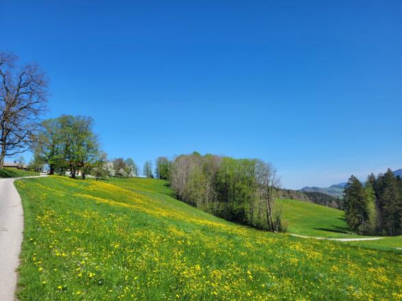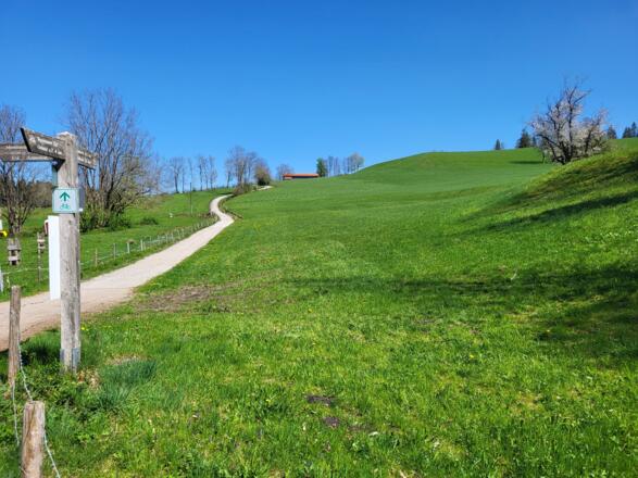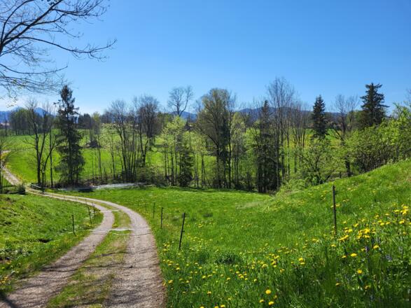 Wir starten unsere Runde am Wanderparkplatz in Gmund Gasse. Zuerst geht es über Nebenstraßen in Richtung Schwärzenbach, gleich nach dem ehemaligen Gutshof biegen wir rechts auf den Wanderweg 545 ab. Der schmale Weg führt am Rande einer Wiese auf einen bewaldeten Höhenrücken. Dieser Abschnitt kann nach längerem Regen etwas matschig sein. Nachdem die ersten Häuser in Hintereck erreicht sind, biegt man auf die Teerstraße rechts ab und überquert zwischen "Antenloh" und "Unterschuß" die Bundesstraße. Über eine kleine Brücke erreichen wir auf einem Wiesenweg (Weg 515) in wenigen Minuten die Freizeitanlage Ödberg-Ostin. Zurück zum Ausgangspunkt in Gasse gelangt man über die Neureuthstraße und den Niemandsbichl (510a).