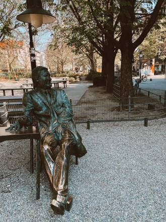 Neben dem Busbahnhof, dessen Architektur an einen Pilz erinnert, reihen sich Bar an Bar und ein Restaurant folgt dem Nächsten. Vor einem Café direkt an der Freiheit ist eine Statue zu sehen, die Helmut Schmitt verkörpert, einen ehemals berühmten Schauspieler, wie er genüsslich auf einem Stuhl sitzt und das Geschehen mit einem Lächeln im Gesicht beobachtet.
