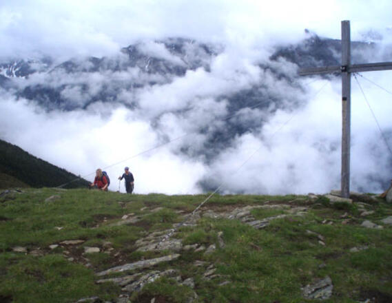 Für den Abstieg sollte man sich immer ein wenig Kraft aufsparen. Über die "Brennachböden" – der Name spricht für sich – geht es zunächst Richtung Osten und dann geht man den Narrenkogel umrundend Richtung Bichl. Von dort geht man die alten Weiler Bichl und Höfle duchquerend wieder Richtung Falknerhof.