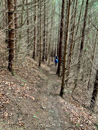 Nach Regentagen ist der Steig im Fichtenwald oberhalb der Hubertuskapelle sehr rutschig.