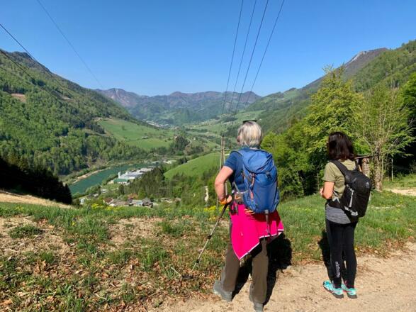 Der Weg beginnt beim Besucherzentrum Ennstal. Man quert die Bundestraße und geht die Sattlerstraße bergauf bis zum letzten Haus. Danach führt der Weg auf der Forststraße bis zur Stelle, wo der Wanderweg in den Menweg einmündet. Oben angelangt hat man einen herrlichen Blick zurück nach Reichraming