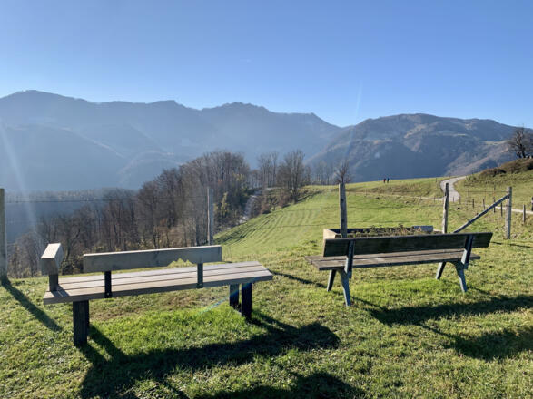 Wir starten beim Gemeindeamt gehen ortsauswärts zum Kebabstand. Von dort führt ein schöner Waldweg am Hang des Freinberges entlang, nach einigen steilen Kehren zweigt der Weg links zur Fahne, einem leicht exponierten fahnengeschmückten Felsvorsprung mit Bankerl, welches einen herrlichen Ausblick auf Ternberg und das Ennstal freigibt. Über den Bergkamm führt der Steig in einem Rechtsbogen weiter zur Kleinternberg-Alm. Auf der Straße geht es nun bis zur Großternberg-Alm, wo unsere natur.Bank steht.
