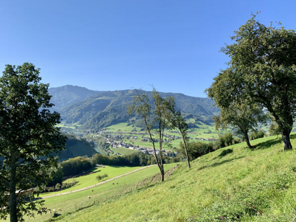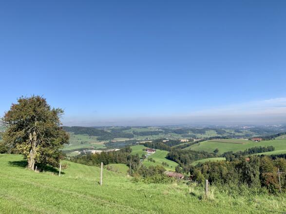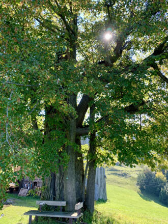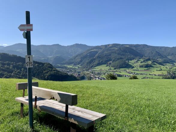 Der Weg führt zuerst entlang der Bundesstraße durch den Ortsteil Brunndorf, dann rechts über einen Wiesenweg ansteigend bis zur Abzweigung Güterweg Reitnerberg. Weiter auf der asphaltierten Straße bis unterhalb des Bauernhauses „Machler“, wo wir auf der ersten natur.Bank eine kurze Rast einlegen und die Aussicht zurück nach Ternberg genießen. Oberhalb des Bauernhofs zweigen wir nach links ab, wo die Straße zu einem bereits aufgelassenen Bauernhof führt. Unter einer alten Linde steht die natur.Bank mit herrlicher Aussicht in das Voralpengebiet sowie in das oberösterreichische Flachland bis hin zu den Mühlviertler Bergen.