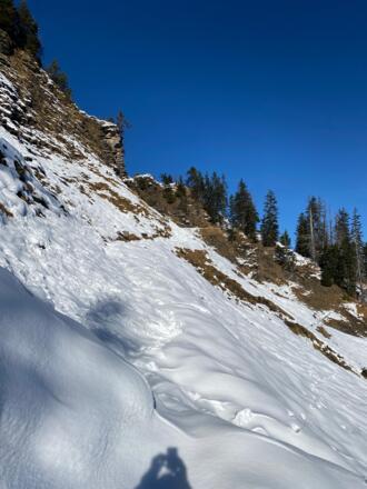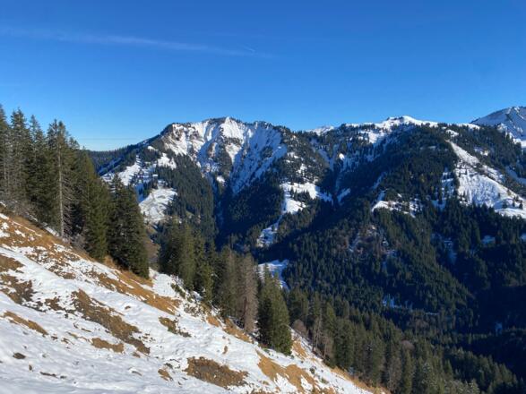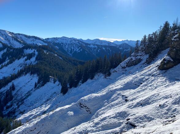zwischen Hörnle 1581m und Vorderhörnle 1656m ist der Wanderweg sehr ausgesetzt (Absturzgefahr) bei Nässe, Schnee und Vereisung, hier unbedingt Grödel anziehen. Im Mai oder Oktober kann es mitunter schon vorkommen das Schnee auf dem Weg Hörnle/Vorderhörnle liegt.