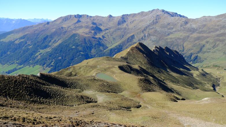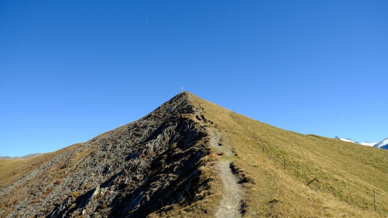 Vom Parkplatz aus gehts zunächst auf einen schön ausgetretenen Weg quer durch den Wald hoch bis zur Naviser Hütte. Dort wechselt der Steig auf einen Almweg und führt über beweidete Almwiesen hoch zur wunderschön gelegenen sowie urigen Stöcklalm. Etwas wehmütig lassen wir diese hinter uns, freuen uns aber auf die spätere Einkehr. Weiter gehts nun, vorbei an unzähligen wunderschönen Blumen, über wiesiges Gelände von Kuppe zu Kuppe hoch zu einer kleinen Scharte, von wo man erstmals seit Beginn des Aufstiegs wieder das Ziel, den Gipfel vor Augen hat. Mit Erreichen der Scharte weitet sich auch das Gelände, der ein oder andere kleinere See aber auch die fernen spitzen Gipfel des Tuxer Hauptkamms werden sichtbar. Von hier führt der Weg schließlich über das Grat als letzter Abschnitt der Tour hoch bis zum Kreuz. Belohnt wird man für die Mühen des Aufstiegs mit einen tollen Rundumblick, von den höchsten der Tuxer- und Zillertaler Alpen über das Wipptal bis hin zu den Gletschern der Stubaier Bergwelt. Außerdem macht sich sicherlich die ein oder andere Schafherde, die sich sonnenseitig unterhalb des Gipfels aufhalten, bemerkbar.