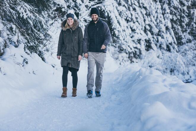 Knöchelhohe Wanderschuhe mit rutschfester Sohle, warme und wasserfeste Wanderausrüstung, Gamaschen, Handschuhe & Mütze oder Stirnband – Bekleidung im sogenannten „Zwiebellook, Sonnencreme und Sonnenbrille, ausreichend Wasser und Jause