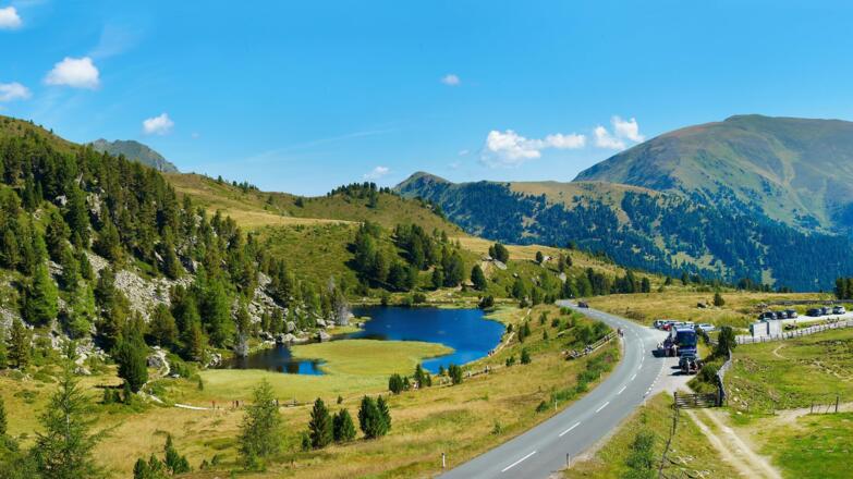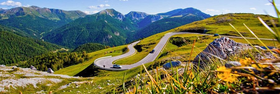 Die Nockalmtour gehört zum Pflichtprogramm der Kurvenfreunde. Auf einer Länge von ca. 45 km geht es über zwei Hochpunkte - Glockenhütte und Eisentalhöhe - auf über 2.000 Metern. Neben unzähligen Serpentinen gibt es aber auch Sehenswertes, wie z.B. das alte Heilbad "Karlsbad".