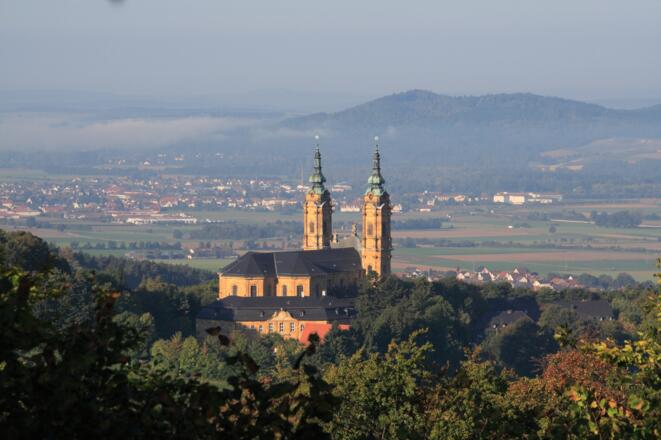 Der Nothelferweg zwischen Klosterlangheim und der Basilika Vierzehnheiligen verbindet zwei der wichtigsten Sakralbauten der Region und lässt dich die 14 Namen der Nothelfer in dieser schönen Umgebung wunderbar verinnerlichen. Der Weg ist breit ausgebaut und dementsprechend auch gut geeignet für Familien. Als Abstecher empfiehlt sich ein kurzer Umweg zum Victor-von-Scheffelblick, von wo aus du einen herrlichen Ausblick auf Vierzehnheiligen und das Maintal hast. Bequem einkehren kannst du u.a. im Gasthof Goldener Hirsch oder in einer der weiteren Gaststätten in Vierzehnheiligen oder Klosterlangheim.