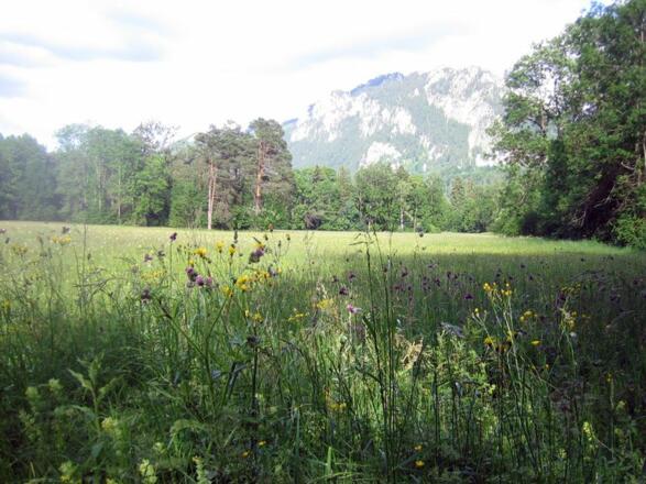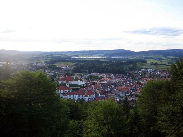 Der Schwanseepark überrascht immer wieder aufs Neue, was für eine Blumenpracht! Hier folgt man alledings auch historischen Spuren, wurden doch sämtliche Wege bereits vor fast 160 Jahren geplant und angelegt. Damals für die Gesellschaft bei Hofe. Über 60 Kilometer Wanderwege gibt es im Schwanseepark. Wenn man den Wegweisern Fischersteig folgt, geht es alsbald in Serpentinen den Berg hinauf. Oben angekommen, folgen Sie den Schildern Alpenrosenweg, der schöne Blicke auf den Schwansee freigibt. Am Abzweig Ziegelwies rechts halten Richtung Kalvarienberg. Der Aufstieg lohnt sich, hat man doch von dort eine traumhafte Aussicht auf Schlösser, Seen und die Stadt Füssen. Oder Sie wandern unterhalb des Kalaviarienbergs auf der Königsstraße wieder zurück zum Ausgangspunkt Schwansee.