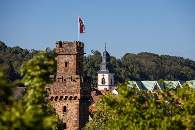 In Stockstadt gab es zur Römerzeit mehrere Kastellanlangen. Immer weiter entlang des Mainufers erreichen Sie Seligenstadt mit seiner bezaubernden Altstadt und den schönen Eis-Cafés rund um den Marktplatz und die Einhardsbasilika, das Wahrzeichen der Stadt. Das historische Highlight ist die ehemalige Benediktinerabtei mit ihrem bekannten Klostergarten.