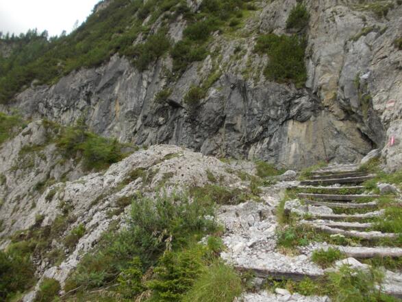 Der gut gesicherte Wandersteig verläuft teils in alpinem Gelände - vor allem oberhalb der Obstanser See Hütte sollte die Wanderung nur bei halbwegs gutem Wetter fortgesetzt werden.