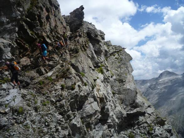 Alpine Erfahrung, absolute Trittsicherheit und Schwindelfreiheit erforderlich. Vorsicht vor Altschneefeldern und bei Nässe.