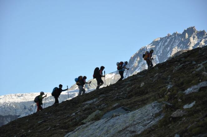 Normale Bergwanderausrüstung inkl. festem Schuhwerk und Reservekleidung.