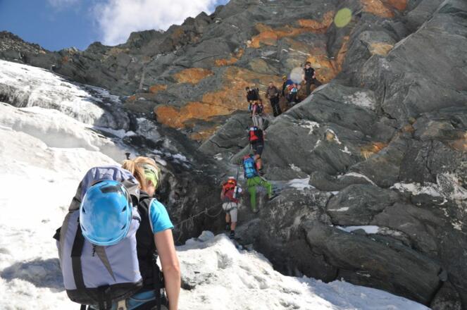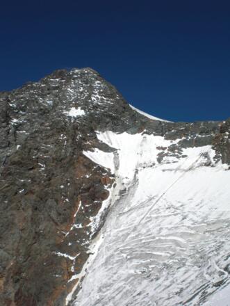 Spaltenreicher Gletscher - entsprechendes Wissen, Können und Erfahrung muss unbedingt vorhanden sein. Ansonsten besser mit Bergführer! Trittsicherheit und Schwindelfreiheit erforderlich.