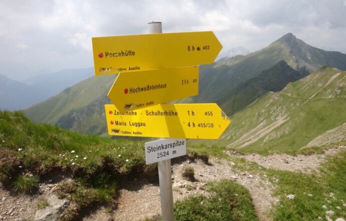 Hinweis Alternativroute: Für die kürzere Variante über den "italienischen Weg" folgt man am Hochweißsteinhaus dem markierten Weg in Richtung Hochalpljoch.