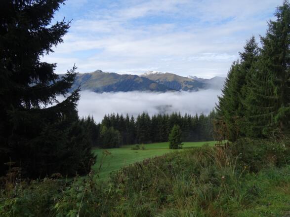 Auf diesem Rundweg bietet sich uns ein wunderbarer Blick ins Tal und auf die umliegenden Berge.