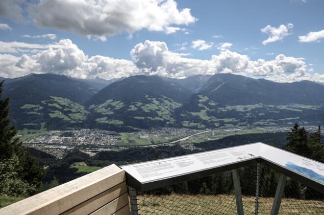 Am Anfang vom Gnadenwalder Plateau, gegenüber vom Speckbacher Hof, fährt man auf der Mautstraße zur Hinterhornalm (1.522 m; zu Fuß ca. 1,5 h). Von dort geht man auf breitem Weg fast ebenzur Walderalm (1511 m). Schöner Blick ins Karwendel, im Süden leuchten die Tuxer- und Zillertaleralpen. Auch der Blick auf das Inntal lädt zur Rast ein! Am selben Weg retour.
