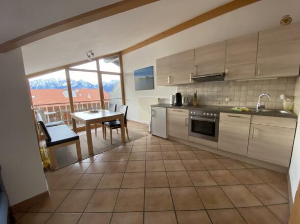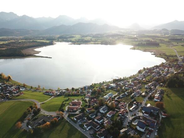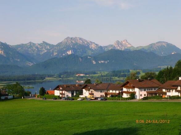 Über dem Hopfensee, mit Blick zur Gebirgskette befindet sich unser Haus.In unmittelbarer Nähe liegen Kneipp-Kurheime mit Hallenbad.Frühstücks- und Aufenthaltsraum, großer Garten.SonstigesBeide Ferienwohnungen mit Parkplatz, Küchen-, Badezimmer- und Bettwäsche inklusive, Tiere auf Anfrage.