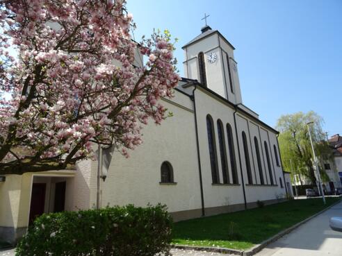 Durch das starke Wachstum des Ortes und die Verlagerung des Zentrums um den Bahnhof, wurde der Bau einer größeren Pfarrkirche notwendig.Begonnen wurde der Bau 1935 und durch eine Aneinanderfügung kubischer Baukörper als moderner Kirchenbau errichtet.
