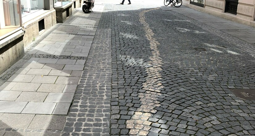 Die Pflastersteine in der kleinen Gasse erinnern symbolisch an den Widerstand zu Zeiten des NS-Regimes