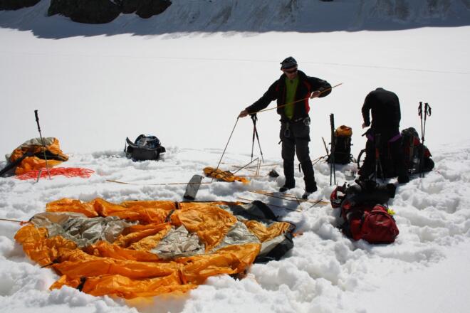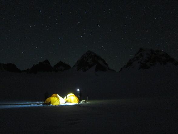 In einer klaren Nacht bietet eine Übernachtung auf dem Gletscher ein besonderes Erlebnis! Ohne gute Gletscherkenntnisse empfiehlt es sich einen Bergführer zu nehmen.