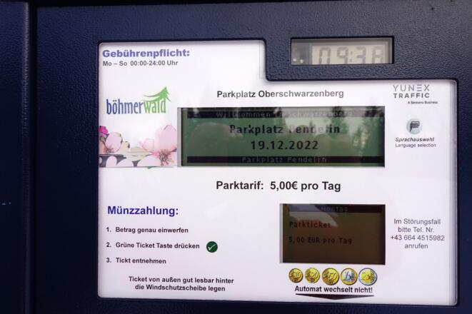 Ca. 1 km nach dem Ortsende von Oberschwarzenberg wurde ein neuer öffentlicher Parkplatz errichtet (€ 5,- / Tag - Stand Dezember 2022 - Automat akzepiert nur Münzen).