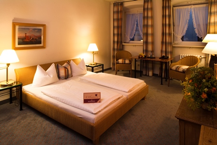 Das Parken in unmittelbarer Nähe und W-LAN im ganzen Haus sind kostenfrei. Zur Wahl stehen 35 Zimmer im Landhausstil, historischem Biedermeier oder moderne Komfortzimmer mit eigenem Balkon.