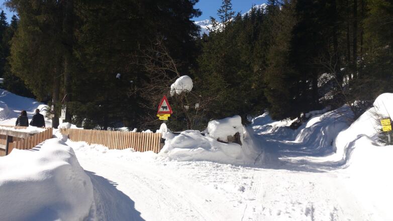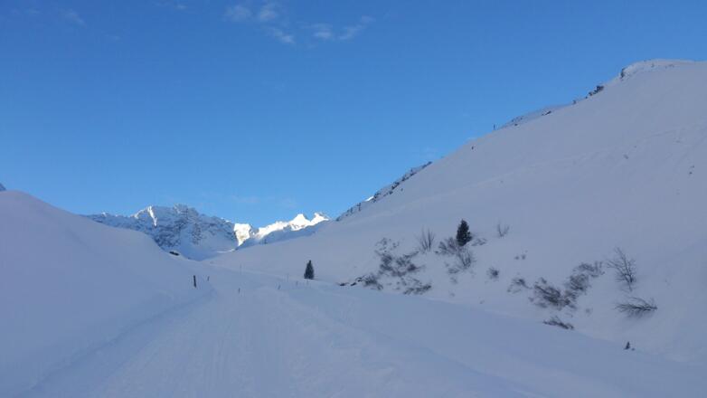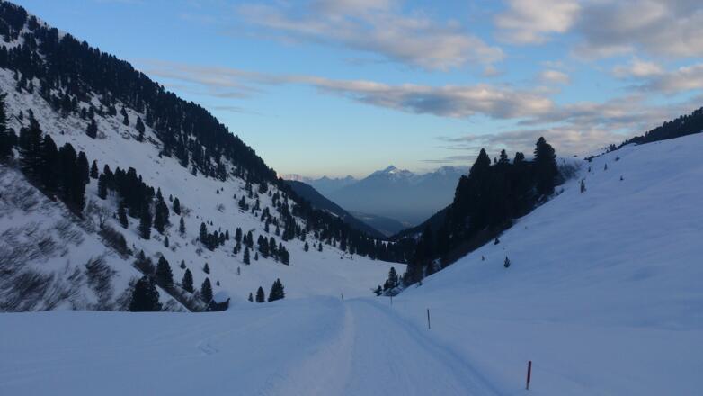 Vom Parkplatz geht es auf dem meist geräumten Forstweg vorbei an der Luderkaserlalm und der Fluigenalm bis zur Abzweigung kurz vor dem Bergheim in der Fotsch. Von hier gibt es zwei Varianten: