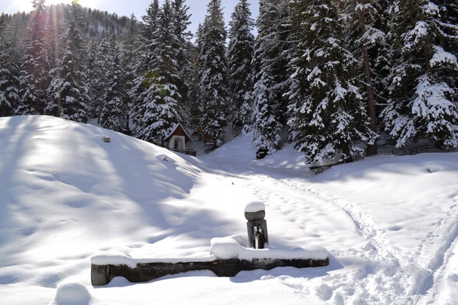 Der Winterwanderweg "Unterer Waldweg" startet beim Parkplatz Muchnersiedlung unterhalb des Schmirner Stadls. Hier befindet sich auch die Skibushaltestelle, die Benützung der Skibusse ist für Winterwanderer mit Gästekarte kostenlos. Der Weg führt anfangs durch ein kleines Siedlungsgebiet, dann mit leichter Steigung über einen schönen Waldweg taleinwärts, dann durch eine weitere kleine Siedlung und schließlich über den Rodelweg zum Wallfahrtskirchlein "Kalte Herberge". Von dort über einen ruhigen Waldweg wieder abwärts zum Beginn des Wildlahnertals und nach Tolder zum Gasthof Olperblick, der zu einer Einkehr auf der schönen Sonnenterrasse einlädt. Hier befindet sich auch wieder eine Skibushaltetelle für die Rückfahrt. Das Bergsteigerdorf Schmirn gilt als besonders schneereich weshalb bis in den Frühling meistens sehr winterliche Verhältnisse herrschen.