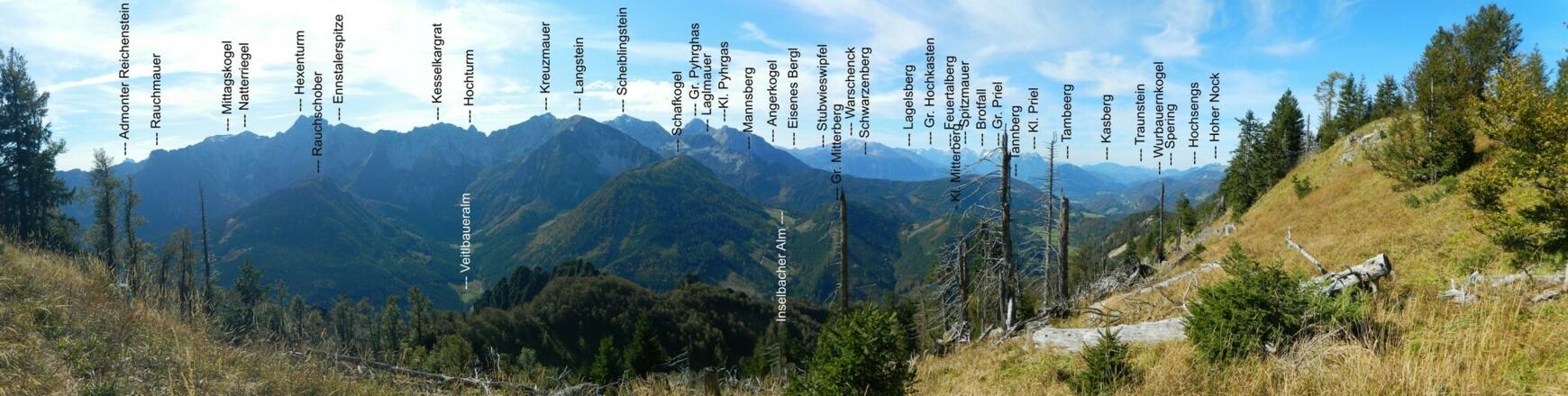 meine Variante: Rumpelmayrsteig bis zum Kampermauer-Gipfel, weiterer Aufstieg zum Schwarzkogel, am Grat zur Tannschwärze, Abstieg zum Hengstpass, auf Asphalt (besser mit dem Rad!) zurück zur Karlhütte.