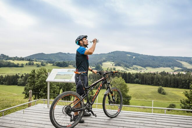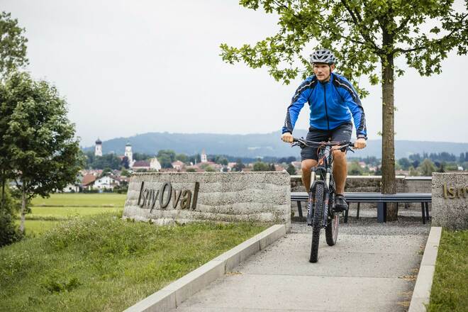 Schon am Startpunkt blicken Sie auf ein imposantes Bild: Unter den hohen Steinriesen in der Ferne breitet sich die historische Altstadt von Isny aus. Mit ihren vielen Kirch- und Wehrtürmen zeichnet die Stadtsilhouette die Alpenkette nach. Allein schon von der symbolischen Bedeutung sind sie miteinander verbunden: Berg und Turm - beides steht für Aufstieg und Höhe, Macht und Überblick. Zudem diente das Gestein, das die Gletscher während der Eiszeiten hierher transportierten, ab dem 13. Jahrhundert als Baumaterial für Gebäude und Stadtmauer. So trifft Schöpferakt auf die Schaffenskraft der Menschen. Beide - Mensch und Eis - waren in der Region großartige Baumeister. Mit den hohen Bergen, historischen Orten und schönen Kapellen auf der Strecke oft sichtbar, manchmal aber auch im Verborgenen. Beeindruckende, wilde Schluchten, die die schmelzenden Eismassen erschufen, sind in die Landschaft eingebettet. Um diese Schätze zu entdecken, lohnt es sich unbedingt, einen Halt einzuplanen. Eine echte geografische Sensation ist der Eistobel. Hier locken Steinbarrieren die Wildheit des Wassers hervor, bis die Obere Argen voller Wucht über Felsen strömt, Gumpen aushöhlt und kraftvoll über einen 18 Meter hohen Fall ins Tal Richtung Bodensee stürzt. Was für eine erfrischende Pause für heiße Radlerwaden!
