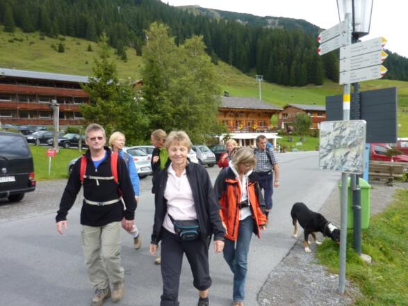 Ab der Bushaltestelle laufen wir vorbei am Gasthaus Alpenblick zum Fischteich. Über die Brücke des Lechs und dann gehts zuerst auf einem Güterweg und nach ca 1/4 Std. auf einen Wanderpfad Richtung Stierloch. Sobald wir aus dem Wald sind eröffnet sich ein schönes Hochtal und man kann den Weg bis zum Stierlochjoch, der sich schön gleich mäßig hochzieht sehen. Ab dem Stierlochjoch macht sich eine neue Landschaft auf, schöne Almwiesen, der Spullersee und das Skigebiet Sonnenkopf im Hintergrund. Bald erreichen wir auf einem Bergpfad die Ravensburger Hütte. Ab der Hütte empfehlen wir bei trockener Witterung den Steig rechts am See entlang, dieser Steig ist etwas kürzer und hat schöne Passagen mit Felswegen über dem See. Bei nasser Witterung gehen wir auf dem Güterweg links vom See zur Bushaltestelle.