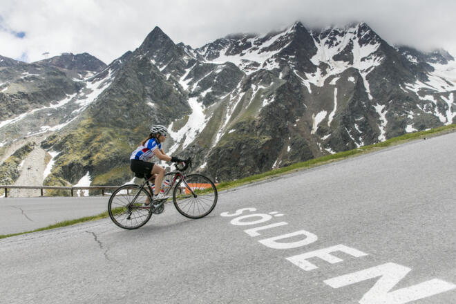 Start bei der Freizeit Arena in Sölden auf der B 186 in Richtung Süden. Nach kurzem einrollen durch das Ortszentrum von Sölden beginnt der Anstieg zum Gletscherschigebiert. Von Sölden aus nehmen wir am Ortsende rechts die Abzweigung Richtung Rettenbachgletscher und Hochsölden. Beim großen Parkplatz kurz vor der Ortschaft Innerwald links halten. Auf etwa 1700 Metern Höhe besteht die letzte Möglichkeit, sich mit der „sanften” Variante zu begnügen und der Abzweigung nach Hochsölden, einem 2090 Meter hoch gelegenen Hoteldorf, zu folgen. Zum Gletscher bei der Kreuzung links halten und der Gletscherstraße folgen. Kehre für Kehre wird abgearbeitet, bevor die Talstation der Seilbahn am Rettenbachferner erreicht wird anschließend rechts abbiegen zum „höchsten mit dem Rennrad erreichbarer Punkt der Alpen”. Die atemberaubende Aussicht auf die umliegende Gletscherwelt lässt so manche Strapazen vergessen. Die Sonnenterrasse des Gletscherrestaurants lädt anschließend zu einer gemütlichen Rast ein. Die rasante Abfahrt über den selben Wegverlauf zurück nach Sölden wird dabei zum puren, mit Adrenalin gefüllten Vergnügen.