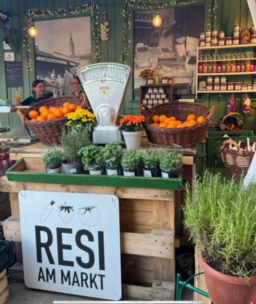Resi am Markt auf dem Viktualienmarkt in München ist ein Ort, der Herzen und Gaumen verzaubert. Seit vier Jahren ist dieser Obst- und Gemüsestand ein Treffpunkt für Feinschmecker und Gesundheitsbewusste. Als Familienunternehmen mit 13 engagierten Mitarbeitern bietet Resi am Markt ganzjährig eine Vielfalt an demeter- oder bio zertifizierten, saisonalen und regionalen Lebensmitteln an. Hier findet man nicht nur hochwertige Produkte, sondern auch eine persönliche Atmosphäre, die zum Verweilen einlädt. Die Leidenschaft und Liebe, die in jedes Produkt gesteckt wird, ist spürbar.