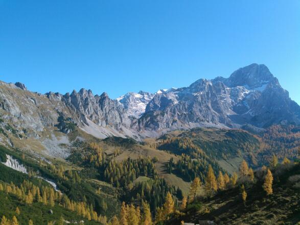 Vom Hotel Alpenhof fahren wir mit dem Fidibus bis zu den Hofalmen. Start ist bei der Oberhofalm, von dort aus führt ein Weg rechts in Richtung Rinderfeld. Sobald wir an einem markanten Kletterfelsen vorbeikommen, geht links ein steiler Steig zum "Kasaboden", einer Senke durch die sich ein klarer Gebirgsbach schlängelt. Wir folgen dem Bach und kommen zum Rinderfeld. Hier lohnt es sich eine kurze Pause einzulegen und die Umgebung auf sich wirken zu lassen. Vom Rinderfeld aus geht es links in Richtung Hofpürgelhütte über dem Linzer Steig. Nach einer verdienten Rast auf der Schutzhütte gehen wir ein kurzes Stück den gleichen Weg zurück. Bei der Abzweigung gehen wir rechts über den Wastl Lackner Steig - welcher etwas steil den Berg hinab führt - wieder zurück zu den Hofalmen. Zurück zum Hotel fahren wir wieder mit dem Fidibus.