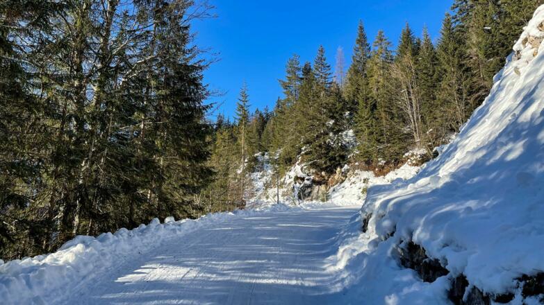 Sportliche Rodler können auch auf den etwas steileren Ganghoferweg durch den Wald ausweichen. Über diesen erreicht man in etwa 20 Minuten die Hämmermoosalm.