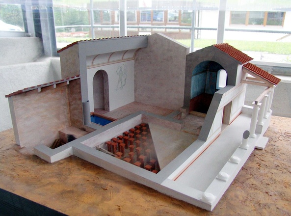 Das Römerbad ist ein eindrucksvolles Denkmal antiker Bautechnik. Die Fußböden und Wände wurden durch ein ausgeklügeltes Feuerungssystem erwärmt, das die Römer hypocaustum nannten. Die Heißluft zirkulierte unter den Fußböden und zog durch die röhrenförmigen Ziegel in den Wänden ab.