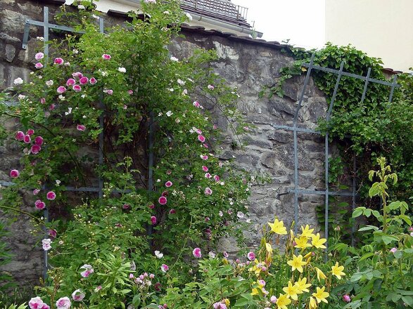 Alte Rosen in historischem Umfeld - der Wemdinger Rosengarten