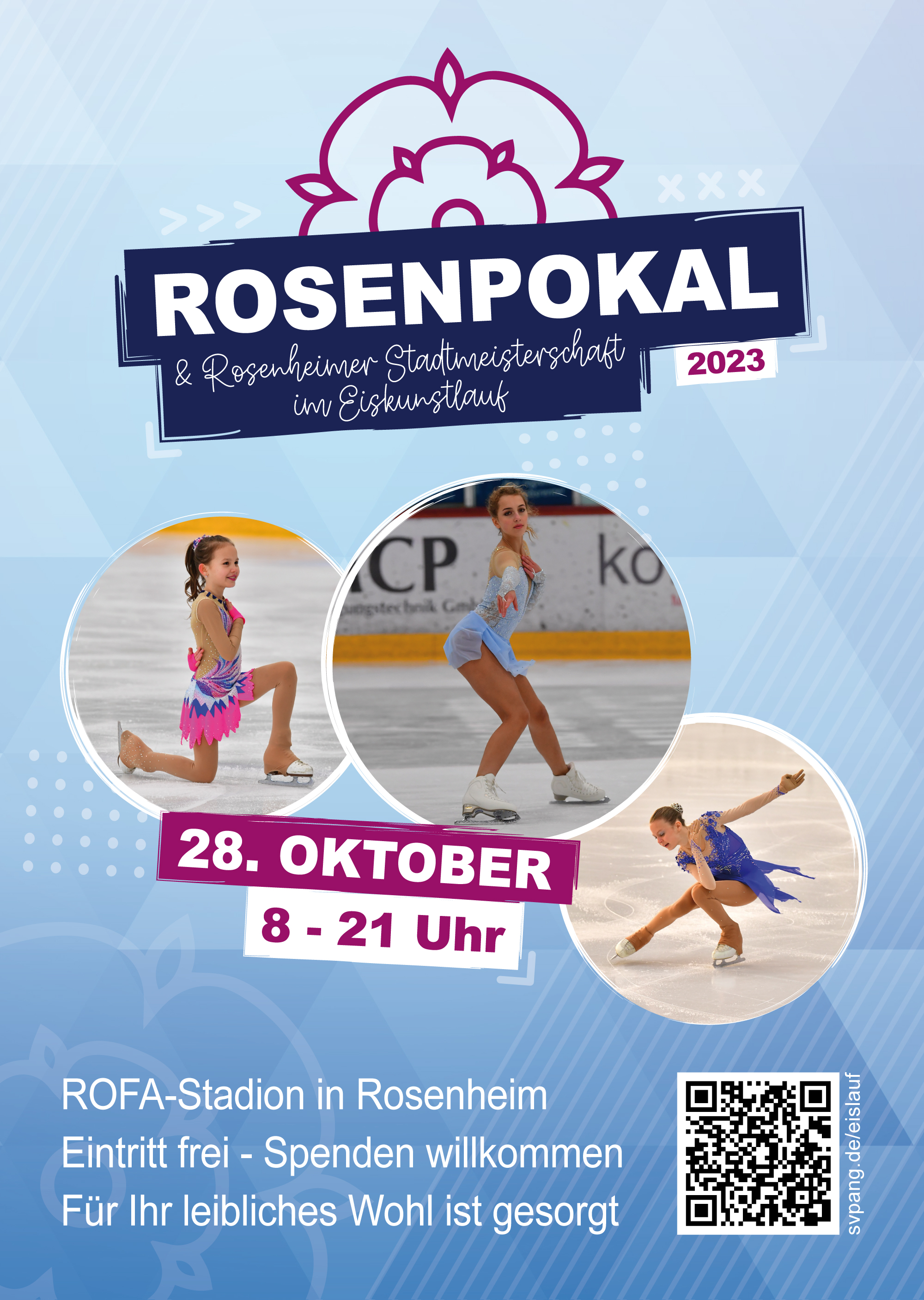 Die Abteilung Eiskunstlauf des SV Pang lädt herzlich zum Rosenpokal 2023 am 28. Oktober nach Rosenheim ein und eröffnet damit die Wettkampfsaison in Bayern. In diesem Rahmen findet auch die Rosenheimer Stadtmeisterschaft im Eiskunstlauf statt. Zuschauer sind herzlich willkommen, der Eintritt ist kostenlos. Im Bulls28 erwarten Sie leckere Speisen und Getränke. Erleben Sie im ROFA-Stadion, wie talentierte junge Eiskunstläuferinnen und Eiskunstläufer ihre beeindruckenden Küren auf dem Eis präsentieren.