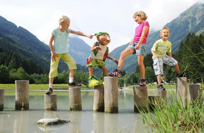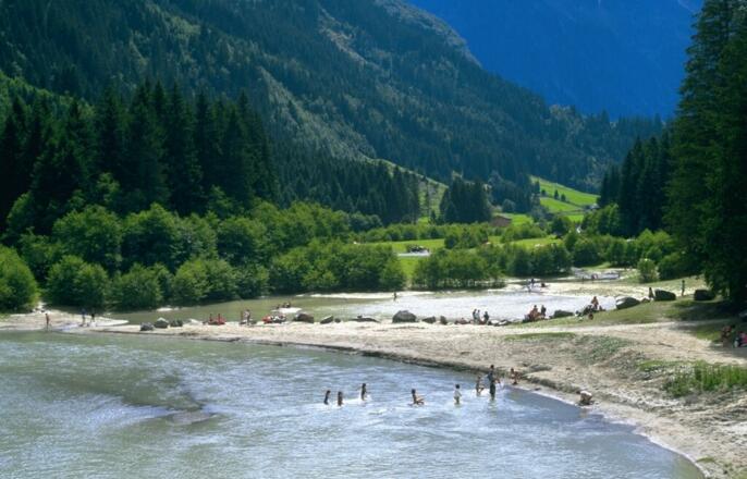 TIPP: Ein wunderbarer Platz zum Entspannen ist das weiter talauswärts gelegene Schwemmland bei "Klaus Äuele". Schon lange wird der sandige Boden und das ruhig fließende Wasser wie ein Badestrand genutzt. Die künstlich angelegten Seen, durch die das frische Wasser der Ruetz fließt, sind ein herrlicher Spielplatz für Jung und Alt. Der große Waldspielplatz sowie der Hochseilgarten bieten Spiel und Spaß für einen gemütlichen Tag.