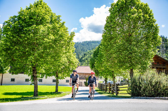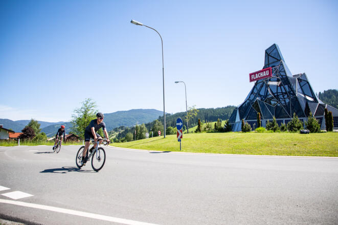Start Tourismusinfo Flachau - auf der Dorfstraße Flachau Richtung Kreisverkehr am Ortseingang von Flachau - beim Kreisverkehr gerade durch (zweite Ausfahrt) Richtung Reitdorf – nach Gemeindeamt Reitdorf rechts Richtung Altenmarkt - nach der Autobahnunterführung (km 5) links (Richtung Firma Atomic) - beim Hotel Kesselgrub links über Bahnübergang Richtung Eben - durch den Ort Eben hindurch über Niedernfritz und Hüttau (Fritztal) nach Bischofshofen - von Bischofshofen weiter nach St. Johann im Pongau - im Ortszentrum von St. Johann links Richtung Wagrain - stetiger Anstieg bis nach Wagrain - im Ortszentrum von Wagrain (direkt bei der Kirche) links Richtung Flachau retour