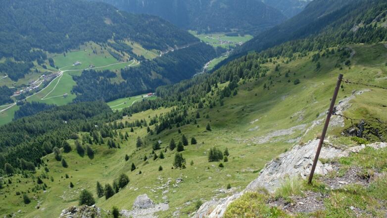 Vom Parkplatz in der Leite (gekennzeichnet als Parkplatz Peter-Kofler Klettersteig) gehts zunächst zurück zur Kirche und weiter Richtung Bahnhof. Unmittelbar nach Durchqueren des Bahntunnels rechts abbiegen und den steilen Anstieg bewältigen, der kurze Zeit in die Straße zur Bahnhofssiedlung mündet. Hier wiederum links abbiegen und immer geradeaus der asphaltierten Straße folgen, die nicht spät in eine Forststraße übergeht. Dieser wiederum im Bogen bis zum Ende folgen, nun beginnt der steile Steig nach Hochgenein, der wohl anspruchvollste Teil der Rundtour. Doch auch dieser Abschnitt lässt sich bewältigen, und nach beinahe 500hm ist es geschafft, der höchstgelegen Weiler Tirols, der Hochgeneinhof, ist erreicht. Nun geht es etwas sanfter abwechselnd über lichte Wälder und Almwiesen weiter zum Hochgeneiner Jöchl, eine erste längere Pause ist hier mehr als verdient. Gestärkt gehts dann dem Grat folgend in westlicher Richtung, erst noch durch letzte Wälder, später dann durch Bergwiesen zum Sumpfkopf, dem höchsten Punkt der Rundtour. Das Gelände um das Gipfelkreuz ist recht weit und flach, hier lässt es sich für eine Weile aushalten. Weiter gehts dann schließlich in der Mulde kurz hinter dem Kreuz, hier muss zunächst ein Stacheldrahtzaun überstiegen werden. Nach kurzem knackigen Abstieg gehts dann immerzu den kleinen Pfad folgend im Bogen zurück durch Kiefernwälder und blühenden Wiesen, vorbei am naturbelassenen Biotop "auf der Lacke". Dieser Teil der Tour ist besonders schön, hier kann man sehr viel verschiedene Pflanzenarten, Vögel, Lurche und Insekten beobachten. Doch alles Schöne hat ein Ende und schließlich erreicht man wieder das Grat und den Wegknotenpunkt, unter anderem mit der Abzweigung in das Padastertal. Wir biegen allerdings genau in die entgegengesetzte Richtung ab, nach Süden, zur ehemaligen Gasthof Edelraute. Nun gehts zunächst durch einen unberührten Wald abwärts, bis man nach einiger Zeit zwei Höfe erreicht sowie die Straße nach Hochgenein. Der Straße folgt man abwärts in Richtung Schmirntal bis in den Wald nach einen weitern Hof, hier beginnt dann wieder ein Steig der zum Odumer Hof führt. Vom Odumer Hof führt dann eine aspahltierte Straße durch bewirtschaftete Hänge in Serpentinen zunächst abwärts und dann später über die Oberleite zurück zum Parkplatz nach St. Jodok.