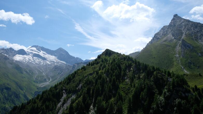 Schöne Wanderung durch Wälder und Almen vorbei an der Kalten Herberge zum Rauhen Kopf und zurück über die Zirmaalm, mit Blick auf das mächtige Olperermassiv. Ideal für Familien und Genießer.