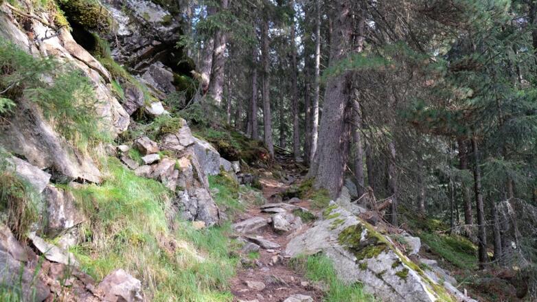 Vom Parklplatz "Unterm Nock" gehts erst in südlicher Richtung einen Forstweg entlang ins Zeischtal. Nach ca. 1 km großteils im Erlenwald erreicht man eine Almfläche. Man folgt den Forstweg weiter bis zu einer großen Kehre - markiert durch einen Wegweiser zweigt hier ein schmales Steiglein ab, das sich nun in Serpentinen die linke Talseite hochzieht. Nicht zu steil und gut ausgebaut lässt es sich hier gut aufsteigen. Schließlich, nach gut 400 hm, erreicht man die Waldgrenze und mit ihr auch drei zu überquerende Wassergräben. Einige Sicherungen und eine breite Wegführung ermöglichen es, auch diese relativ problemlos passieren zu können. Neben der wilden Schönheit des frei fallenden Wassers in den Gräben erwartet den Wanderer auch das sogenannte "Buttermandel", ein vom Wasser angetriebenes Drehrad. Mit Erreichen der drei Gräben ist die zu bewältigende Höhe quasi geschafft, nun gehts relativ eben im Bogen zum Zeischerbach und seinen Steg, dem Endziel der Tour.