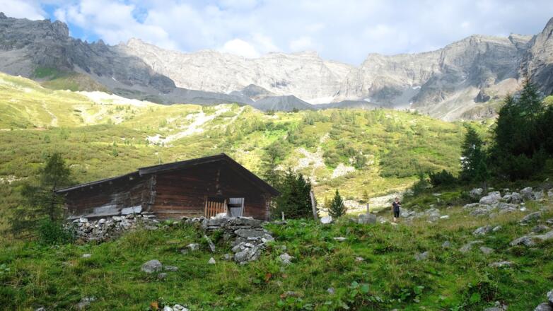 Familienfreundliche Wanderung auf die atemberaubende, wilde und unberührte Zeischalm vorbei an Wasserfällen den hohen Felswänden des Valser Talabschlusses zu