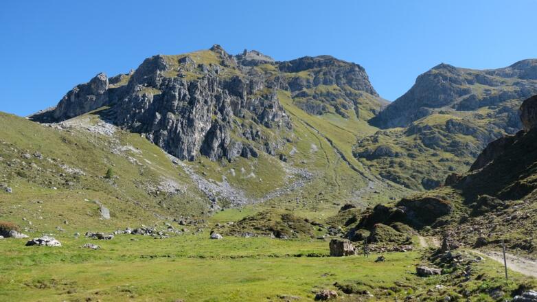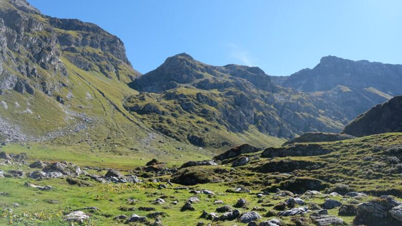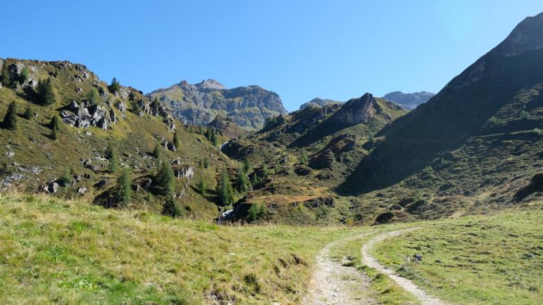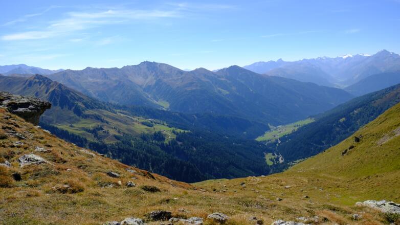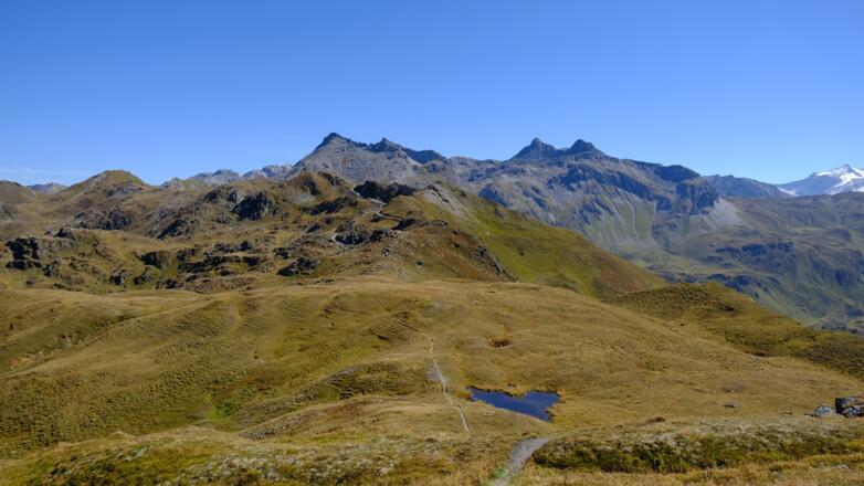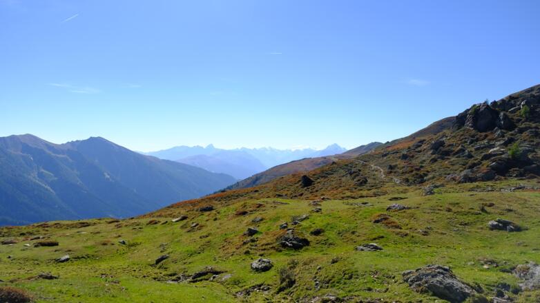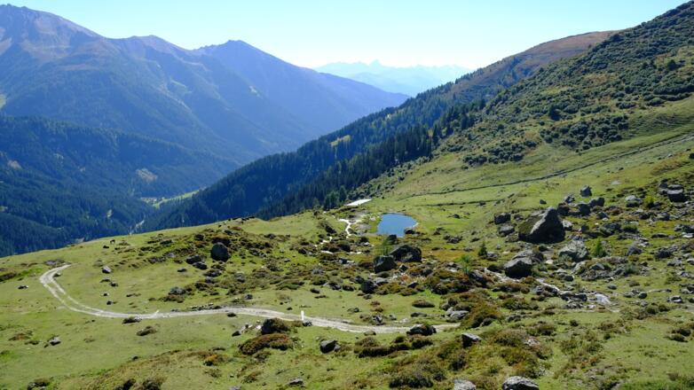 Vom Parkplatz am Ende des Tales gehts zunächst entlang der Almrunde vorbei an der Peer- zur Klammalm. Urig und wunderschön gelegen in einen weiten Talkessel eignet sie sich für eine erste kurze Einkehr. Weiter gehts dann im Bogen über artenreiche Almböden und vorbei an zahlreichen Gewässern hoch zum Klammjoch, dem Übergang ins Wattental. Rund ums Joch gibs mehrere kleinere Seen, ihn deren Atmosphäre eine weitere kurze Rast ganz besonders schön ist. Anschliesend gehts dem Grat entlang über die Schoberspitzen zum Mösljoch und von dort weiter zu der auf einem steinernen Plateau gelegenen Naviser Sonnenspitz, dem höchsten Punkt der Tour. Während der ganzen Zeit auf dem Grat hat man einen überragenden Ausblick auf die Spitzen des Tuxer Hauptkamms und die weit entfernten Gletscher der Stubaier Alpen sowie auf das unter einem liegende Navistal. Von der Naviser Sonnenspitz führt der Weg dann über das Naviserjöchl hinunter zu den bunten Böden der Grafmartalm und von dort weiter über die Zeheter- und Peeralm zurück zum Ausgangspunkt.