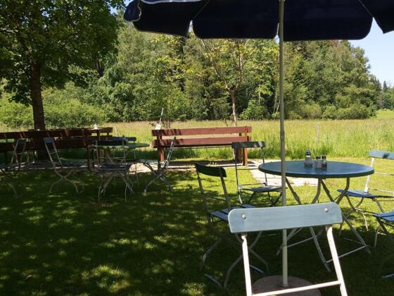 Nachdem ihr in Mürnsee angekommen seid, stoßt ihr schon bald auf die gleichnamige Straße. Dort biegt ihr nach rechts ab und folgt dem Weg immer weiter, bis ihr an unserem nächsten Punkt ankommt: Dem Landgasthof Reindlschmiede. Hier könnt ihr eure erste größere Pause einlegen. Die Reindlschmiede bietet verschiedene Gerichte nach Tageskarte an. Manchmal kann man hier sogar ein Kräutergericht oder selbstgemachte Kräuterbutter essen.